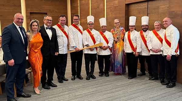 Luego, anunció Paty Benavides “llega uno de los momentos más esperados de la noche, la ceremonia de entronización de los nuevos miembros de los discípulos de Éscoffier, ellos son: Christian Leroy, Eduardo Estrella, Eduardo Luna y Felipe Meneses Pelayo y, destacó que esa ceremonia se remonta a los valores del gran maestro dÉscoffier, “reconoce el compromiso con la excelencia, la transmisión del saber y la unión de la gastronomía como familia sin fronteras”.